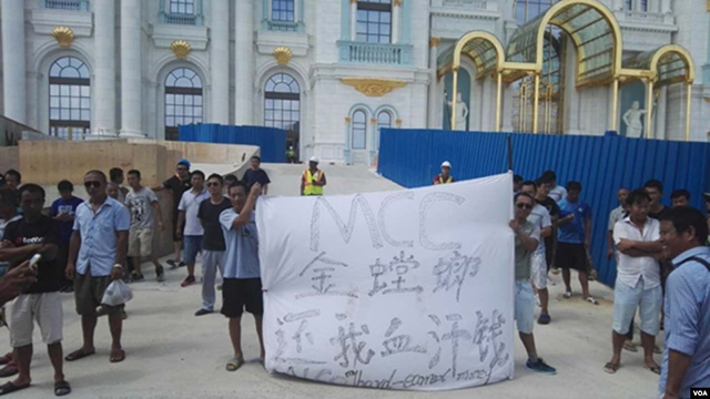 资料照:中国工人在博华太平洋赌场工地抗议(中国工人提供) 美国一家联邦法院周一(5月24日)裁决, 7名在塞班岛一家赌场工地打工的中国工人,在控告雇主人口贩运和强迫劳动案中胜诉,... |