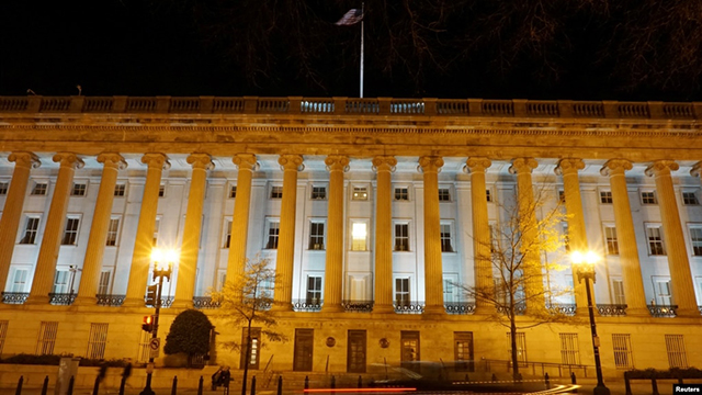 资料照片:美国财政部大楼夜景 (2020年12月13日) 美国财政部星期二(5月18日)说,它根据《香港自治法》的规定已向国会提交了有关报告,没有确认“任何外国金融机构在知情的情况下”与... |
