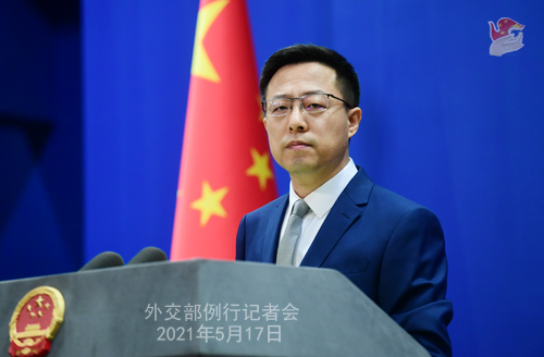 2021年5月17日外交部发言人赵立坚主持例行记者会。 英国天空新闻台记者:美国国家航空航天局此前称,中方任由火箭残骸不受控制地坠落地球是不负责任的行为。中方是否会采取措施以确... |