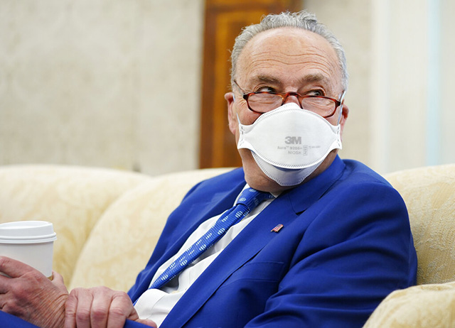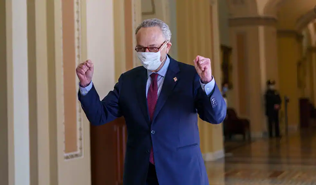 资料照片:参议院多数党领袖舒默在参议院以微弱多数票通过1千9百亿美元的新冠疫情纾困法案后离开议事厅。(2021年3月6日) 一部抗衡来自中国越来越大的竞争压力的法案在美国参议院朝着最终... |