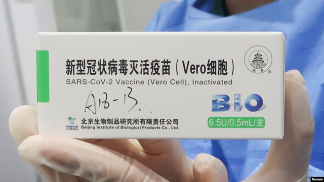 一名护士手持中国国药集团生产的新冠疫苗。(2021年4月15日) 美国政府日前首度表态支持世贸组织(WTO)关于新冠疫苗等抗疫物资智慧财产权之豁免提案后,引来大型药厂和部分欧洲国家的强烈... |