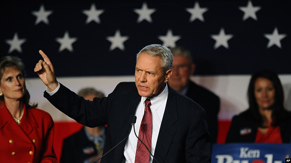 资料照片:2014年11月4日,当时的科罗拉多州共和党众议员候选人巴克在丹佛的共和党选举之夜集会上发表讲话。 在七家苹果供应商被指涉新疆强迫劳动后,来自科罗拉多州的共和党联邦众议员... |