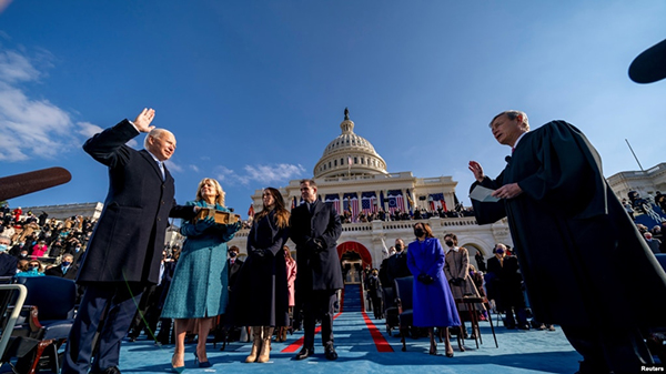 拜登2021年1月20日宣誓就任美国第46任总统(路透社转发媒体联访照片) 美国总统拜登上台执政这个星期满100天。行政当局高级官员说,拜登政府在头100天里联合盟友共同应对中国的挑战,并... |