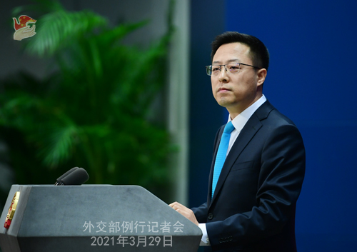 2021年3月29日外交部发言人赵立坚主持例行记者会。 外交部、国家中医药管理局将于3月30日在北京联合举办“中医药与抗击新冠肺炎疫情国际合作论坛”。国务院副总理孙春兰将发表视频致... |