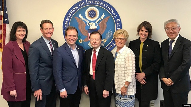 美国国际宗教自由委员会(USCIRF)的成员。左二为该委员会的副主席伯金斯,左五为主席曼钦。(照片来自该委员会。) 美国国际宗教自由委员会(USCIRF)星期一(3月29日)对北京制裁它的两位负... |