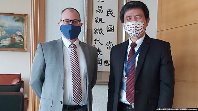 美国驻世界贸易组织代表团代办毕斯比(左)2021年2月11日在日内瓦台湾驻世界贸易组织代表团办公室与罗昌发代表会面(台湾驻世界贸易组织代表团官网照片) 美国驻世贸组织(WTO)临时代办毕斯... |