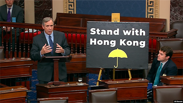 资料照片:在参议院全院即将无异议通过《香港人权与民主法案》之际,俄勒冈州民主党联邦参议员默克里在院会发表演说。(2019年11月19日) 民主党参议员杰夫·墨克里(Jeff Merkley)对路透... |