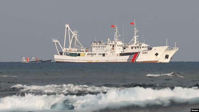 资料照片:2017年5月,在南中海海有争议的斯卡伯勒浅滩(中国称黄岩岛)的中国海警船。 美国国务院星期五(2月19日)表示,美国对中国最近颁布的《海警法》感到关注,担心该法会加剧海上争... |