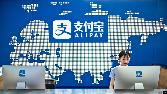 蚂蚁集团在上海的办公楼里支付宝的接待台。(2020年8月28日) 美国总统特朗普星期二(1月5日)签署行政命令,宣布从45天后开始禁止在美国管辖范围内的任何人或实体与“开发或控制”与中... |