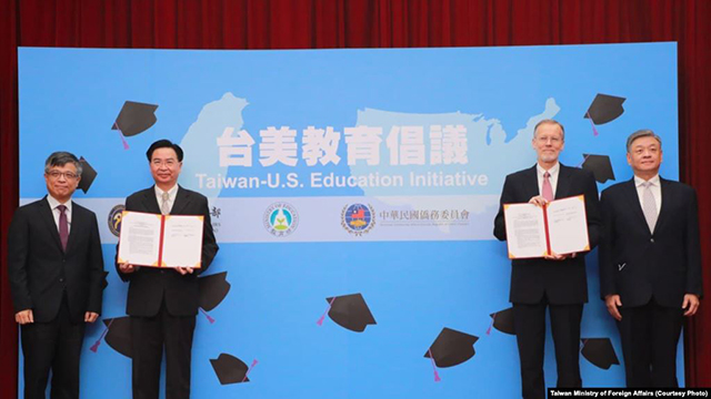 台湾外交部长吴钊燮(左2)与美国在台协会台北办事处处长郦英杰(左3)主持“美台教育倡议”启动仪式(2020年12月3日)(台湾外交部照片) 美国和台湾这个星期启动了一个新的、旨在扩大中英... |