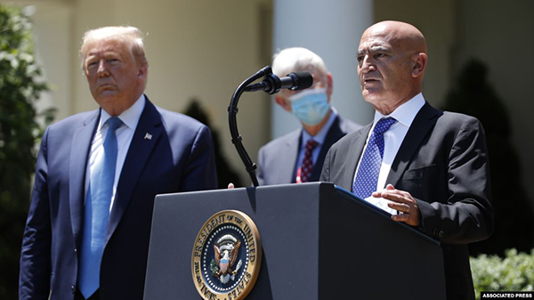 图为葛兰素史克前高管蒙塞夫·斯拉维在白宫玫瑰园讲话。(2020年5月15日) 美国官员星期二(12月1日)公布了计划,最早于12月中旬开始为美国人接种新冠疫苗,他还希望截至今年年底,将有... |