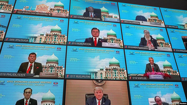 在马来西亚吉隆坡举行的2020年亚太经济合作组织领导人会议在线画面(2020年11月20日)。 亚太经济合作组织(APEC)峰会周五拉开序幕,美国总统特朗普和中国国家主席习近平均发表讲话。尽... |