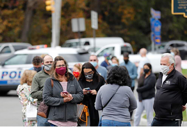 10月24日,纽约州苏福克县(SuffolkCounty)一处投票站,选民戴着口罩排队为2020大选提前投票。(图片来源:中新社) 根据约翰•霍普金斯大学的统计数据,截至27日晚6时,美国新冠肺炎确... |