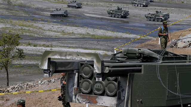 资料照片:在马尼拉以北乌鸦谷举行的美菲联合演习期间展示的美制高机动火箭炮。(2016年4月14日) 美国国务院批准了三项可能向台湾出售武器的方案,国防安全合作局星期三(10月21日)就此通... |
