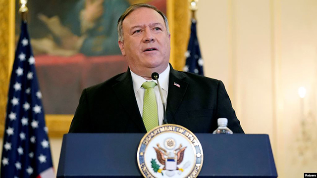 资料照片:美国国务卿蓬佩奥在国务院的记者会上宣布特朗普政府恢复对伊朗的制裁。(2020年9月21日) 美国政府星期一(10月19日)宣布对与伊朗伊斯兰共和国航运公司(IRISL)有业务往来的中... |