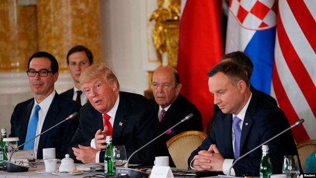 资料照片:在华沙举行的三海倡议峰会上,特朗普总统与波兰总统杜达举行会谈。(2017年7月6日) 美国国务卿蓬佩奥星期一(10月19日)在“波罗的海、亚得里亚海和黑海倡议”的视频峰会上发表... |