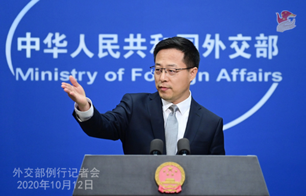 2020年10月12日外交部发言人赵立坚主持例行记者会。 总台央视记者:据报道,美国国务卿蓬佩奥近日接受采访时称,全世界各国会意识到,他们坚定地想要成为美国的伙伴和盟友。中方对此... |
