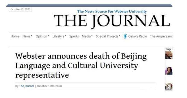 《韦伯斯特大学日报》报道截图 据美国《圣路易斯邮报》9日消息,韦伯斯特大学孔子学院中方代表刘强(Qiang “David”Liu)当地时间周二(6日)在被警方与美国联邦调查局(FBI)搜查其住... |