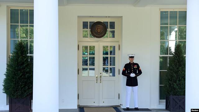 一名海军陆战队员守卫在白宫西翼门外,显示特朗普总统在椭圆形办公室。(2020年10月7日) 美国总统辩论委员会星期四(10月8日)宣布,“为保护所有参与者的健康与安全”,下星期的第二场总统... |