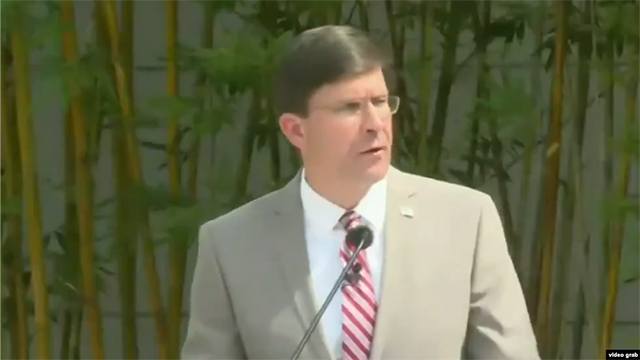 美国国防部长埃斯珀在兰德公司发表演说。(2020年9月16日) 美国国防部长埃斯珀(Mark Esper)星期三(9月16日)在位于加州的智库兰德公司发表演讲时说,中共当局试图重塑美国在二战后主导建... |