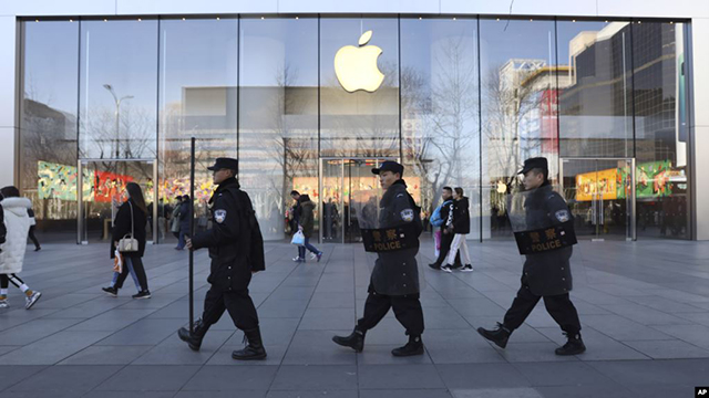 安保人员在中国北京的苹果商店前巡逻(2019年3月6日) 美中关系的严重恶化成为美国在华企业最大的忧虑,远远高于企业关注议题排行榜上的其它议题。越来越多的公司认为美中关系前景只会越... |