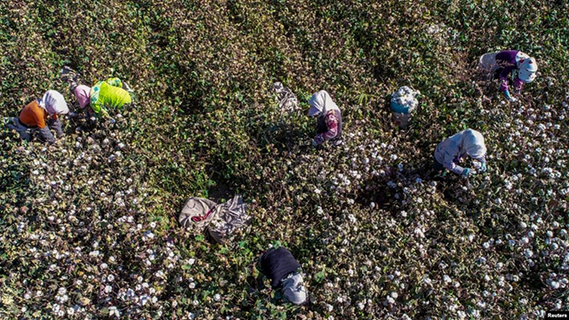 中国新疆哈密一个农场的农工在摘棉花。(2018年10月14日) 据报道,美国政府正在考虑禁止进口来自中国新疆地区的部分或全部棉制品。纽约时报援引“三位知情人士”的话说,禁令最早可能于... |