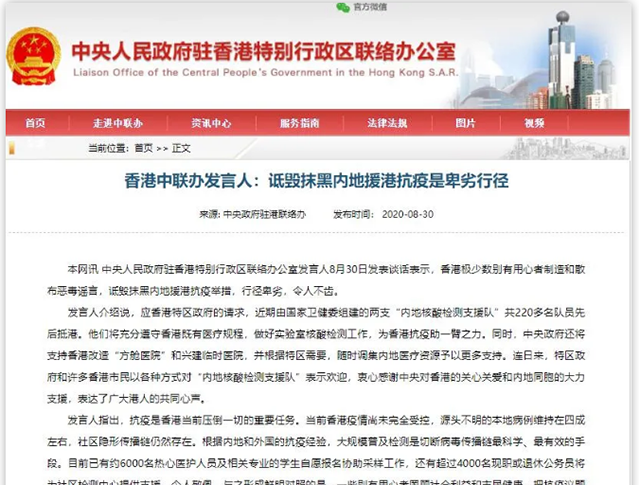 国务院港澳事务办公室发言人8月30日发表谈话,对香港反中乱港分子污蔑内地援港抗疫举措表示强烈谴责和严正警告,指出这种行径罔顾香港市民生命安全和健康,居心恶毒。 ... |