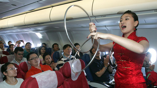 中国东方航空公司的空姐在客机上为乘客表演助兴(2007年9月26日)。 美国交通部星期二(2020年8月18日)宣布,美国和中国答应让两国航空公司将每周来往两国之间的四个航班增加到八个。 &... |