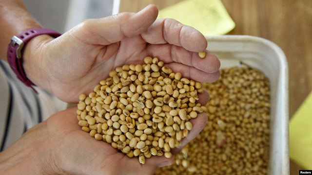 美国北达科他州科尔法克斯附近的家庭农场,凡妮莎·库默正在检查2018年大豆的质量(2019年8月6日)。 路透社周一报道称,中国已要求国有企业停止从美国购买大豆和猪肉,此举是为了报复华... |