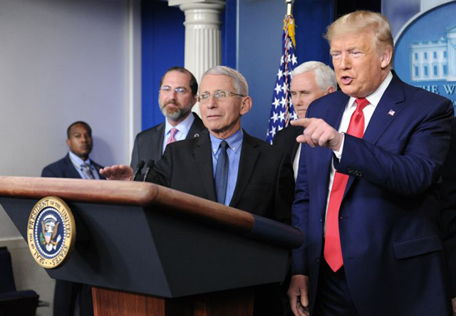今年2月29日,特朗普总统在福奇的陪同下出席白宫疫情发布会。(图片来源:中新社资料图) 美国新冠肺炎累计死亡病例突破10万例,而刚在过去这个周末打完高尔夫球的美国总统特朗普26日发... |