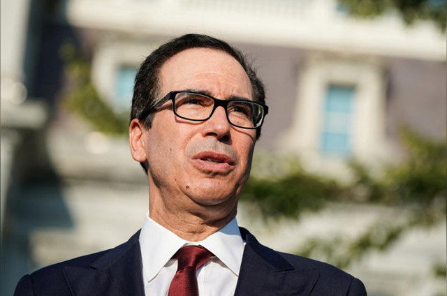 国会和特朗普政府官员表示,议员就批准小企业救济增额项目达成一致,最早可能在周日(19日)达成协议。2019年9月12日,财政部长努钦在美国华盛顿白宫北草坪上接受采访。(图片来源:路... |