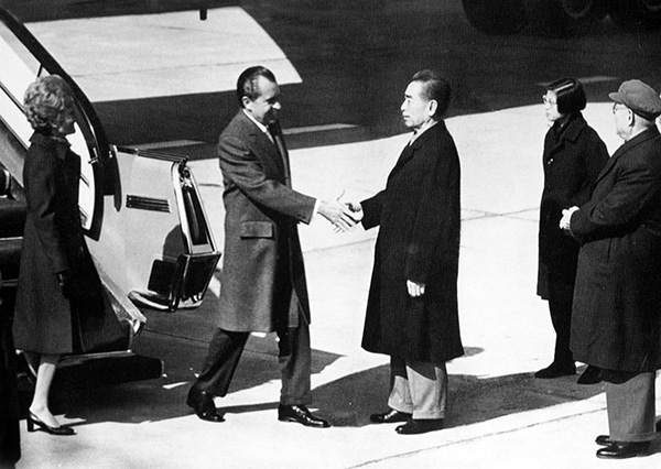 1972年2月,尼克松访华,周恩来到北京机场迎接尼克松。(图片来源:中新社) 1972年2月21日至28日,时任总统尼克松对中国进行了七天访问,这被国际舆论称为“改变世界的一周”,成为美中... |