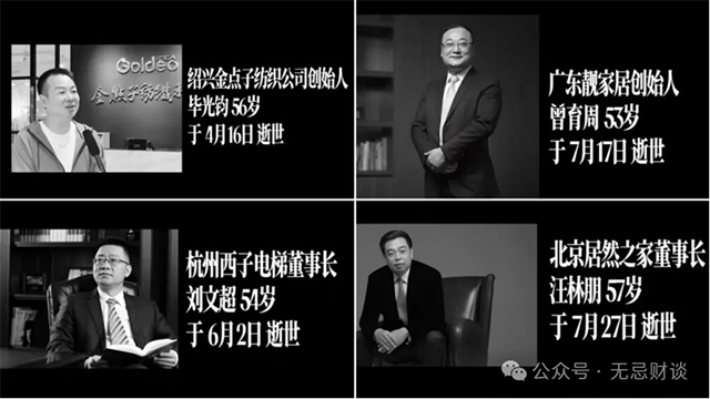 2025年4月以来,中国商界接连发生令人扼腕的企业家非正常死亡事件。绍兴金点子纺织毕光钧、西子电梯刘文超、浙江建投沈康明、靓家居曾育周、居然之家汪林朋等知名企业家相继以坠楼方式... |