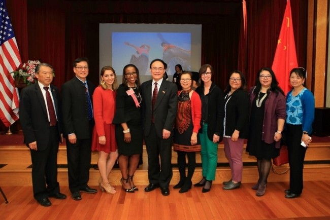 旧金山州大协理副校长吴彦伯、旧金山联合学区副学监Enikia Ford Morthel和Marina 中学校长Ginny Daws分别在招待会上致词,现场中小学生代表还表演了精彩的中国舞蹈、诗歌朗诵和中国书法。
