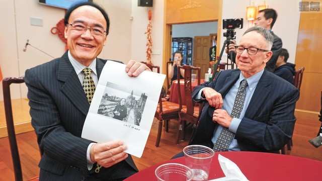 王东华总领事展示高棣民教授40年前在上海的照片(星岛日报记者黄伟江摄)