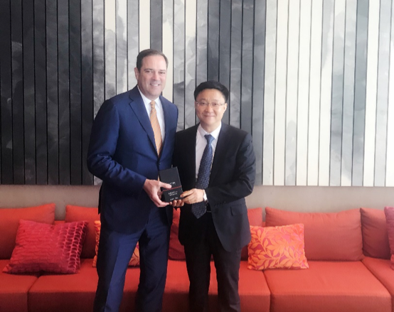 刘庆峰向Chuck Robbins赠送讯飞翻译机