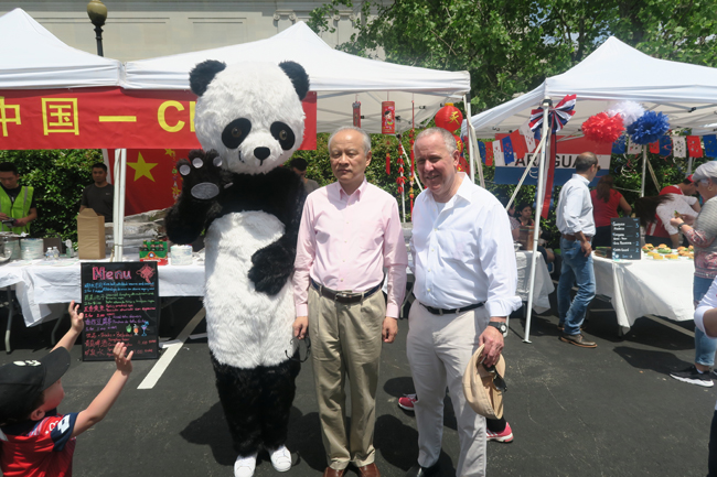 这是中国驻美使馆连续第十年参加美洲食品节活动。除别具特色的展台布置和传统美食外,今年还请弗吉尼亚“峨嵋武术中心”的小演员们表演了精彩的舞龙和拳、剑、刀、棍等武术,受到数千当地民众和游客的热烈欢迎。