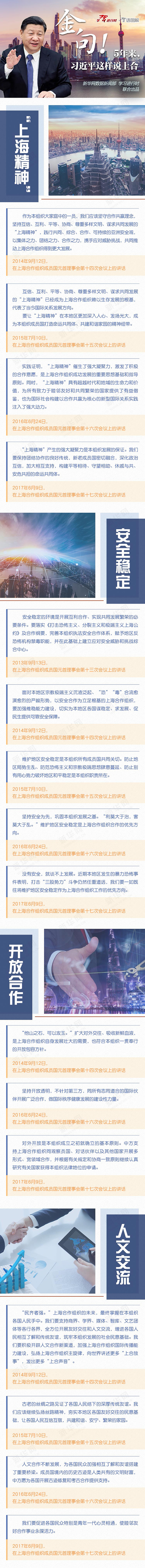 彰显重视,指明方向。面对新形势,习近平主席提出三个“要”:“一要不忘初心,坚定弘扬‘上海精神’;二要发挥优势,充分释放扩员潜力;三要开拓进取,锐意推进全面合作”。