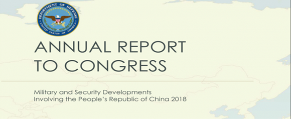 美国国防部发布的《2018中国军事力量报告》封面。(图片来源:美国国防部网站截图)