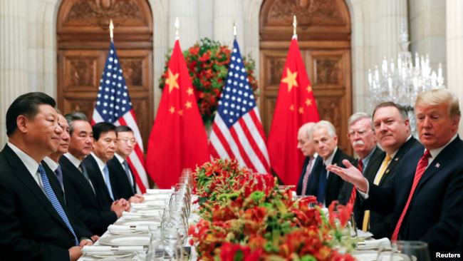 美国总统特朗普与中国国家主席习近平在布宜诺斯艾利斯共进晚餐。(2018年12月1日)
