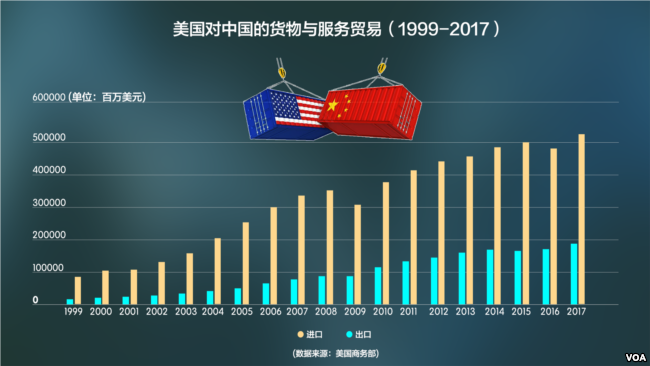 美国对中国的货物与服务贸易(1999-2017)