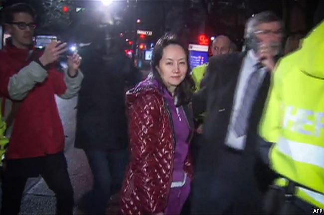 12月1日,加拿大政府应美国要求在温哥华逮捕了中国电信巨头华为公司的首席财务官孟晚舟。孟晚舟是华为创始人任正非的女儿。美国检察官指控她欺瞒跨国银行,以规避美国针对伊朗实施的制裁。中国政府提出抗议,要求放人。孟晚舟12月12日被保释,听候引渡决定。