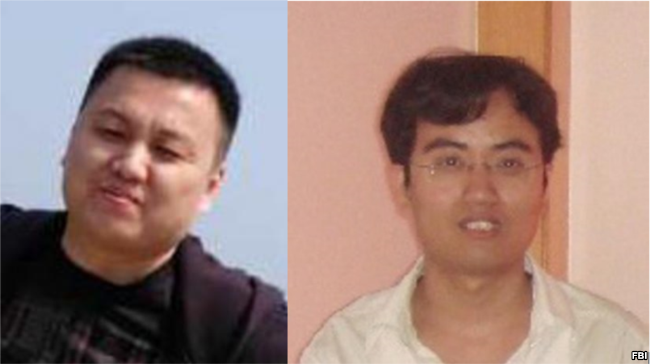 美国司法部公布对两名中国公民Zhu Hua (朱华)和Zhang Shilong (张士龙) 的起诉。(图片来源:FBI)