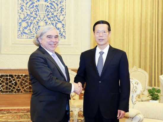 北京3月17日电 中共中央政治局常委、中国国务院副总理张高丽16日在北京人民大会堂会见了美国能源部长欧内斯特·莫尼兹,双方就两国能源、气候变化、核安全等领域合作深入交换了意见。 张高丽表示,当前中美关系总体保持稳定发展。双方应继续认真落实两国元首达成的共识,加强沟通协调,拓展各领域交流合作,建设性地管控分歧,确保中美关系沿着构建新型大国关系的正确轨道向前发展。中美在能源、气候变化等领域的合作取得了丰硕成果,形成了全方位、多层次的能源合作框架。希望双方加强民用核能、电网建设、清洁能源、低碳城市等领域的务实合作,推动中美能源合作水平不断迈上新台阶,为全球能源可持续发展和应对气候变化作出贡献。