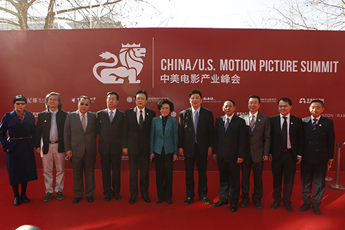 国家新闻出版广电总局副局长童刚(前排右三),全国政协委员、原新闻出版总署副署长、中国新闻文化促进会理事长李东东(前排右二)、中信国安集团有限公司董事长李士林(前排右四)等在会场。 本次峰会是中美电影界规格最高的一次交流盛会,国家新闻出版广电总局副局长童刚,全国政协委员、原新闻出版总署副署长、中国新闻文化促进会理事长李东东,全国政协委员、中国文联副主席、书记处书记夏潮,国家新闻出版广电总局电影局副局长栾国志,中国电影家协会分党组书记张宏,中国电影家协会副主席明振江、王兴东,北京电影学院理事会理事长侯光明,中信国安集团有限公司董事长李士林,中信集团总经理助理罗宁,廊坊市副市长刘文萍与美国电影艺术与科学学院(奥斯卡奖评委会)主席谢丽尔·布恩·艾萨克斯,迪士尼影业公司董事局原主席、美国DCS影业公司董事长迪克·库克,美国电影制片人工会主席加里·卢切西,南加州大学电影艺术学院院长伊丽莎白·戴利,第77届奥斯卡奖最佳影片奖、第78届奥斯卡最佳影片、最佳编剧奖获得者、著名导演、编剧保罗·哈吉斯,凭借《地心引力》荣获第86届奥斯卡最佳导演奖的阿方索·卡隆,第68届奥斯卡最佳编剧奖提名获得者、《勇敢的心》《珍珠港》编剧兰道尔·华莱士,曾获第64届、第79届奥斯卡最佳影片奖提名在内的18项奥斯卡奖提名的著名制片人、导演、编剧唐·翰,华纳兄弟全球执行副总裁理查德·福克斯等三十余位来自美国好莱坞的电影界领军人物,以及中国著名导演陆川、康洪雷等出席峰会。
