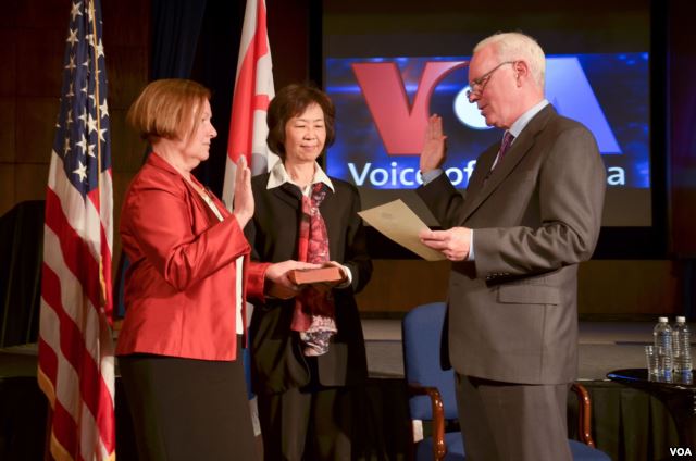 美国之音新台长阿曼达·贝内特(Amanda Bennett)的就职仪式4月18日在美国之音总部大楼举行。