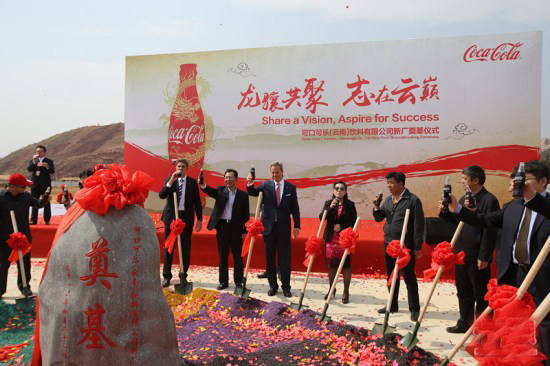 可口可乐装瓶投资集团中国区首席执行官霍可龙,可口可乐大中华及韩国区副总裁马博飞,可口可乐(云南)饮料有限公司总经理李建辉与当地政府代表共同出席了云南新厂奠基仪式。