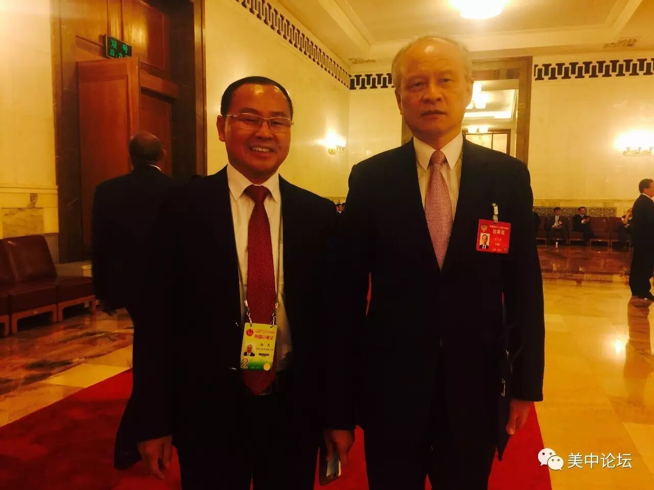 《美中时报》记者在人民大会堂全国政协十二届五次会议开幕式当天采访中国驻美大使崔天凯