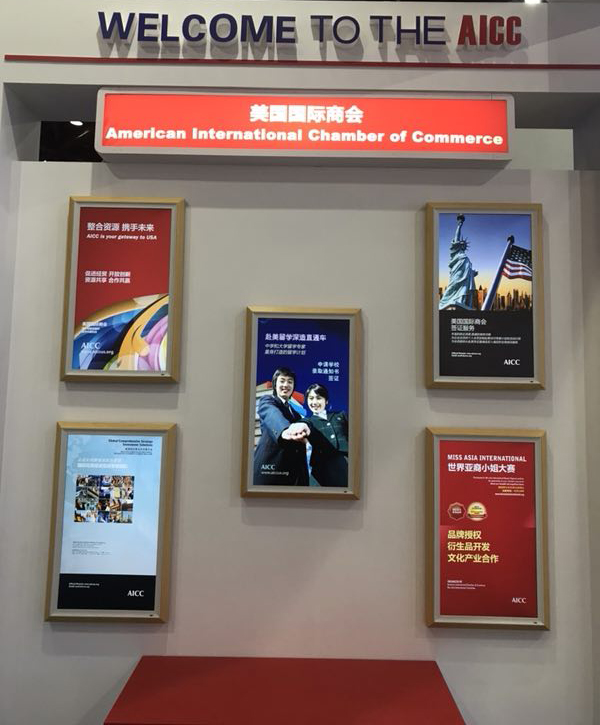 美商馆主办单位负责人、美国国际商会执行会长秦嘉豪告诉美中时报记者,本届美商馆,除了介绍美国国际商会的服务内容之外,还重点选择展示了六家具有代表性的美国企业,包括世界亚裔小姐大赛和全球超模大赛的合作,包括品牌授权、衍生品开发、文化产业合作,还推荐有互联网移动应用概念的国际品牌联盟,及慧眼科技、慧眼传媒两家创新创业企业。