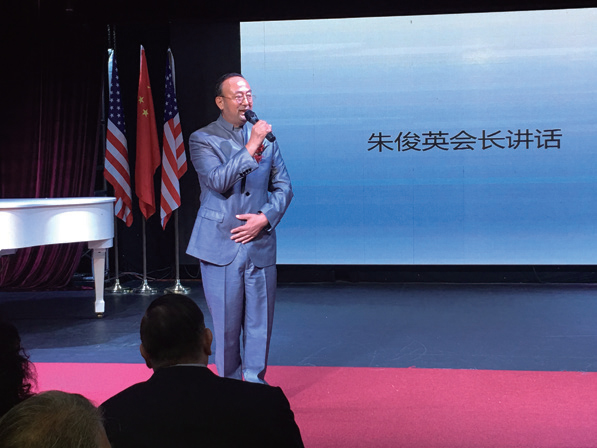 牧之教授向美中经贸文化促进会朱俊英会长颁发证书。